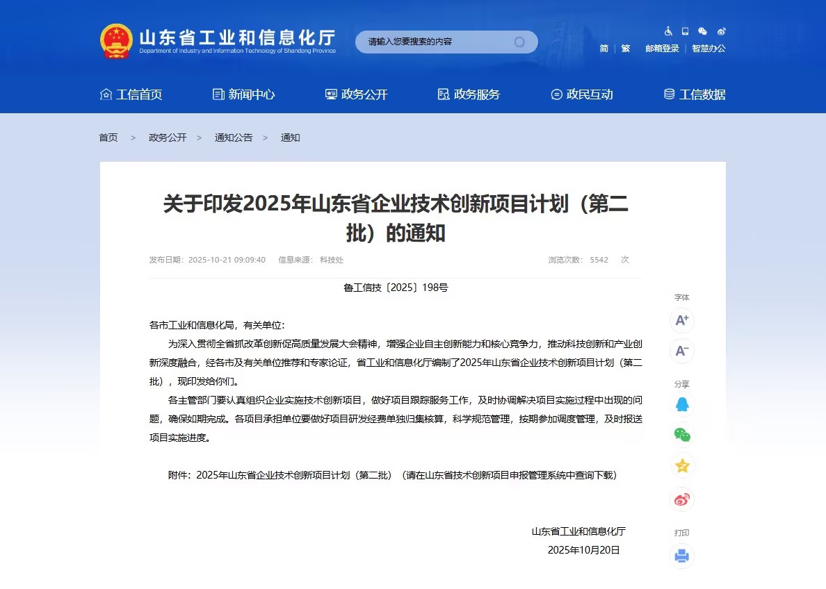【喜报】东信智联成功入选2025年山东省企业技术创新项目计划(第二批)