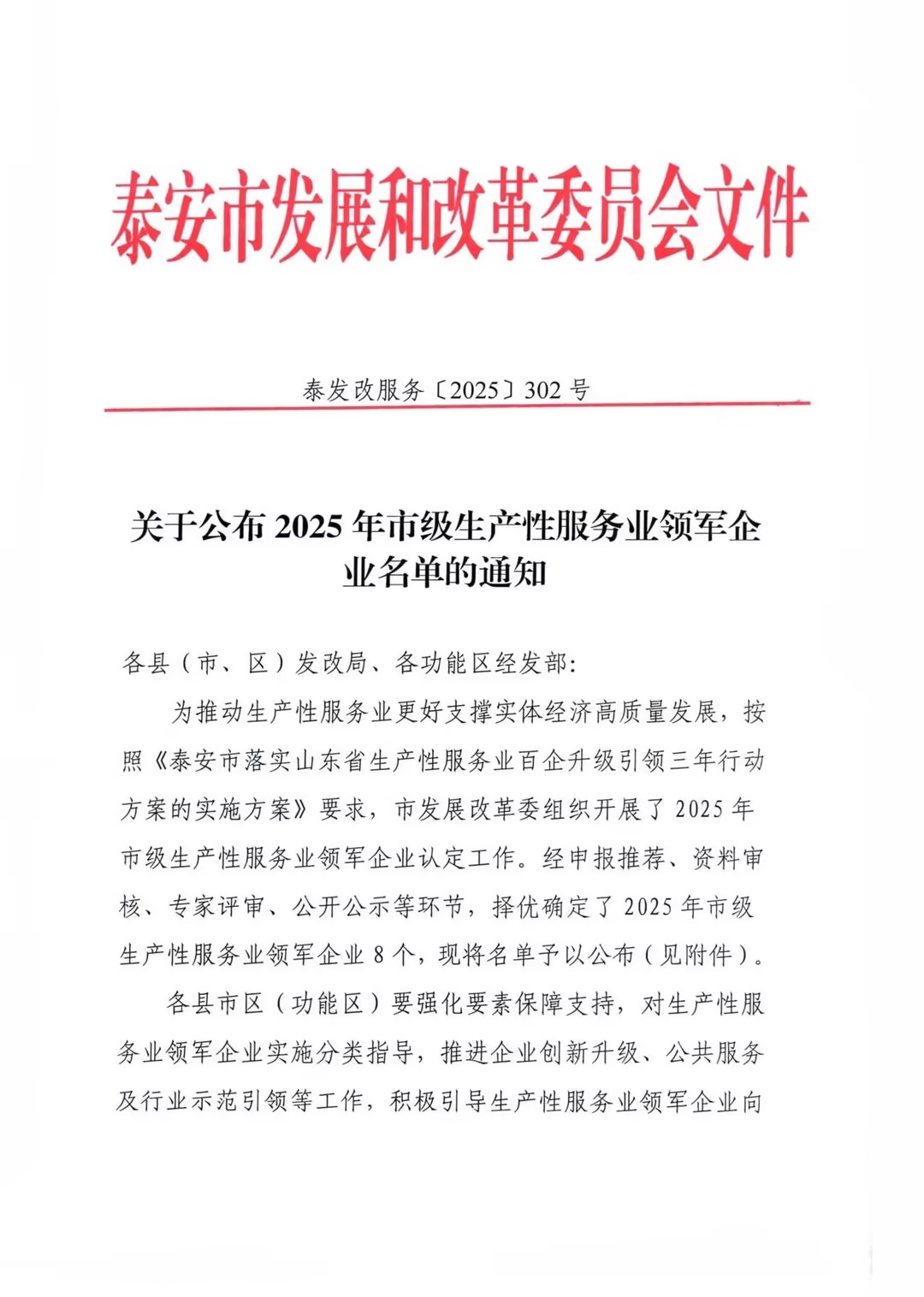 【喜报】东信智联成功入选2025年泰安市生产性服务业领军企业名单