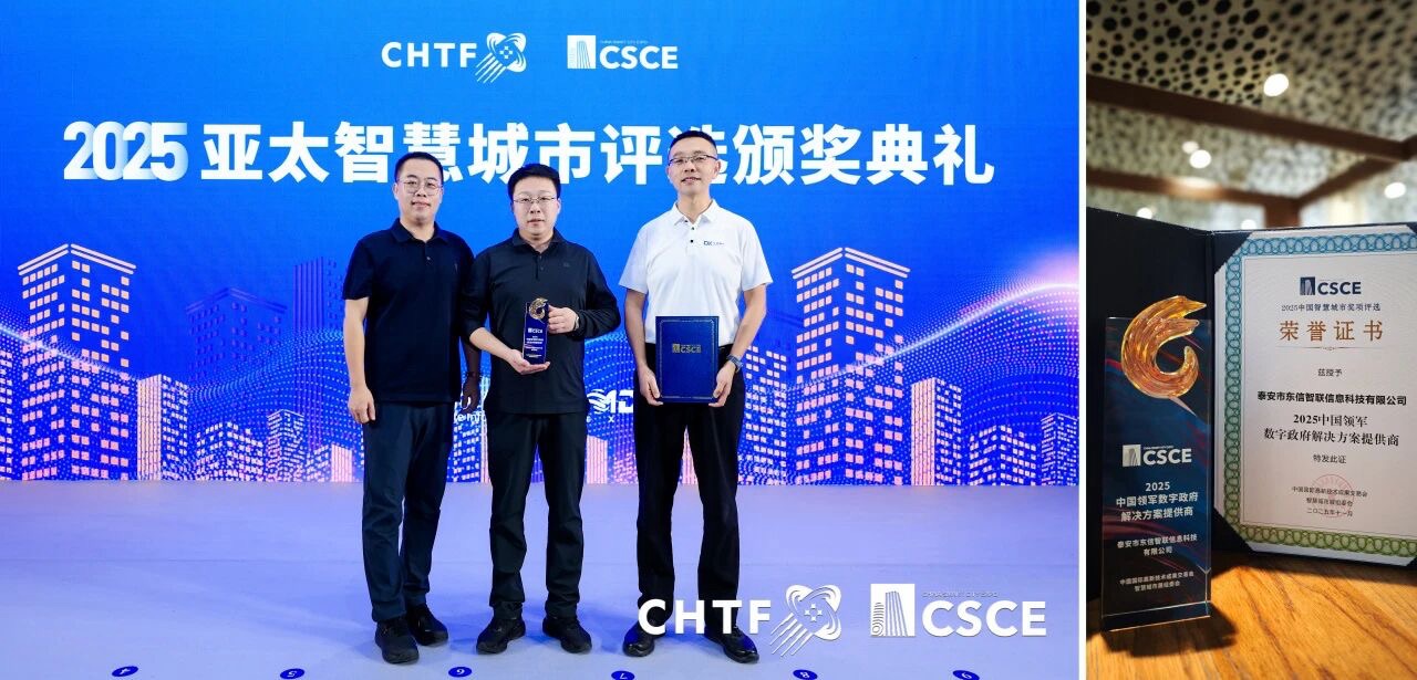 11月14日至16日,第二十七届中国国际高新技术成果交易会“2025亚太智慧城市评选颁奖典礼”在深圳隆重举行。泰安市东信智联信息科技有限公司凭借在数字政府领域的创新解决方案与卓越实践成果,成功斩获“2025中国领军数字政府解决方案提供商”奖项。